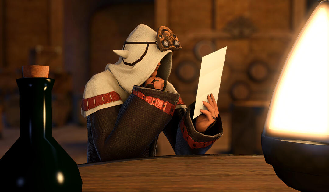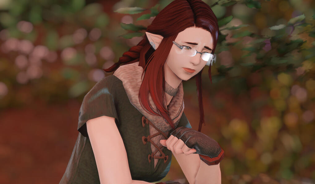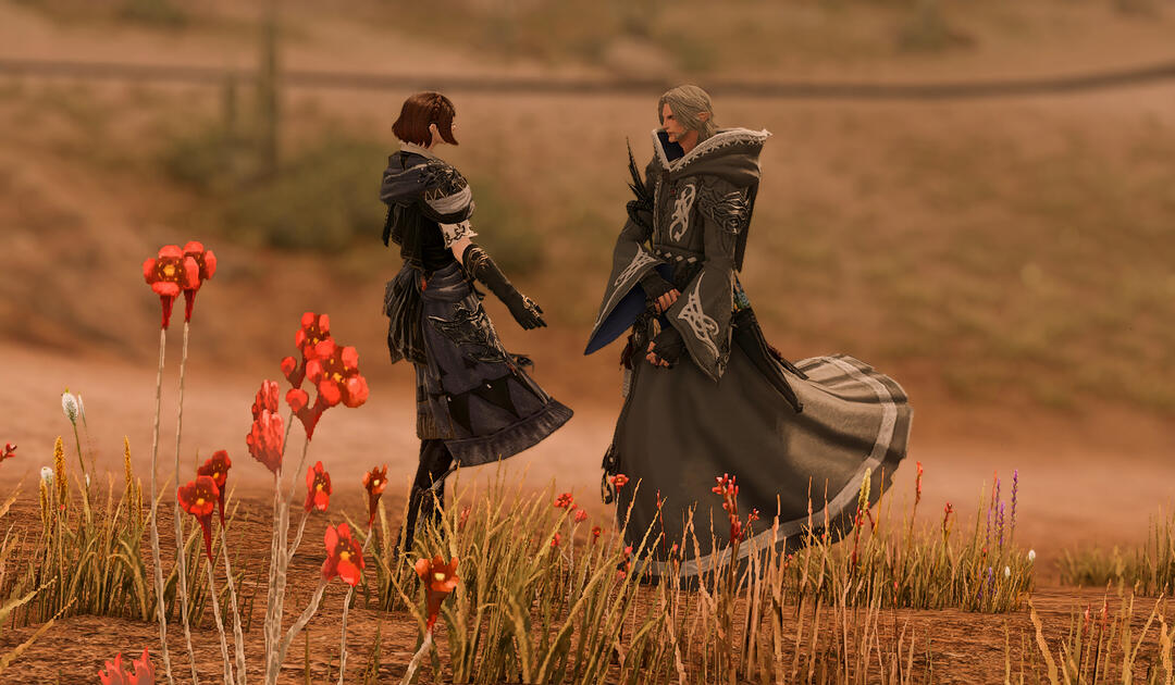 When they’d landed in the desert, before Alisaie left and Urianger went along to escort her, Bee only had a moment to exchange a handful of words with him. He looked at her with soft eyes the color of wine and a set jaw, his face wholly exposed to her for the first time.“Speak thy mind,” he had said, hesitating only slightly as if he steeled himself for what she might say next. “I do not expect thy forgiveness.”She wanted to touch his cheek, to trace the mark on his face with her fingertips. She wanted to place her hand in his and remind herself that in spite of everything, she was alive.“And yet,” she said softly, lowering her voice so that the others nearby might not hear, “you have it.”